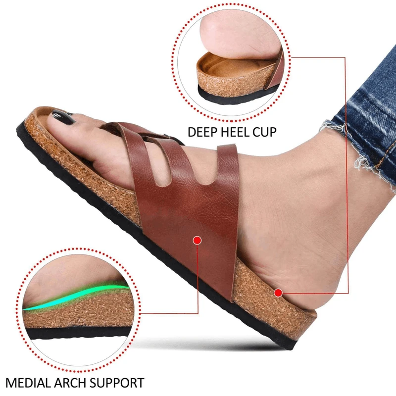 Four straps are combined to make fashion feminine footwear for all the women out there. The upper of Celestis (PU1105) is adorned with functional rusty buckles that add an edgy and classy look to your feet. Add a supernal aura to your personality with these strappy sandals for women. Toe post style accentuates the casual side of these sandals, whereas the strappy upper and regal footbed make them appear to be sophisticated. Pick your size and start enjoying the walk of confidence in these comfy and snug sandals. Â